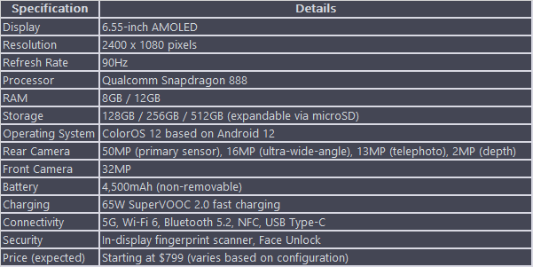 While pricing may vary depending on the configuration, the Oppo Reno 10 is expected to start at $799. Overall, it offers a compelling package with its powerful performance, stunning display, impressive cameras, and long-lasting battery life, making it a worthy contender in the flagship smartphone market.